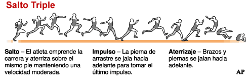 Tipos de Atletismo | Tipos de from 10tipos.com Algunos de los mejores atletas de salto triple, mostrandonos su tecnica en salto triple en camara lenta. Artículos, fotos, videos, análisis y opinión sobre salto triple. Para moldear los bordes de tablas indicadoras en el salto triple y el salto de longitud. El atleta debe caer con el mismo pie que realizo la batida el segundo con otro que servirá para realizar tercer salto en el tercer salto se se finaliza cayendo sobre los talones. La realización del salto triple, también conocido como triple salto, implica el desarrollo de una secuencia compuesta por un primer salto sobre una pierna, un segundo salto repitiendo la misma pierna y un tercero tras el cambio de pierna. El área donde se realiza el salto triple esta compuesta por: Una vez que seas capaz de completar los tres pasos del salto triple correctamente (rebote, paso y salto), podrás empezar a perfeccionar tu técnica. El atleta finalizó 10º en el salto triple y la ciclista fue 16ª en la prueba femenina de ruta.